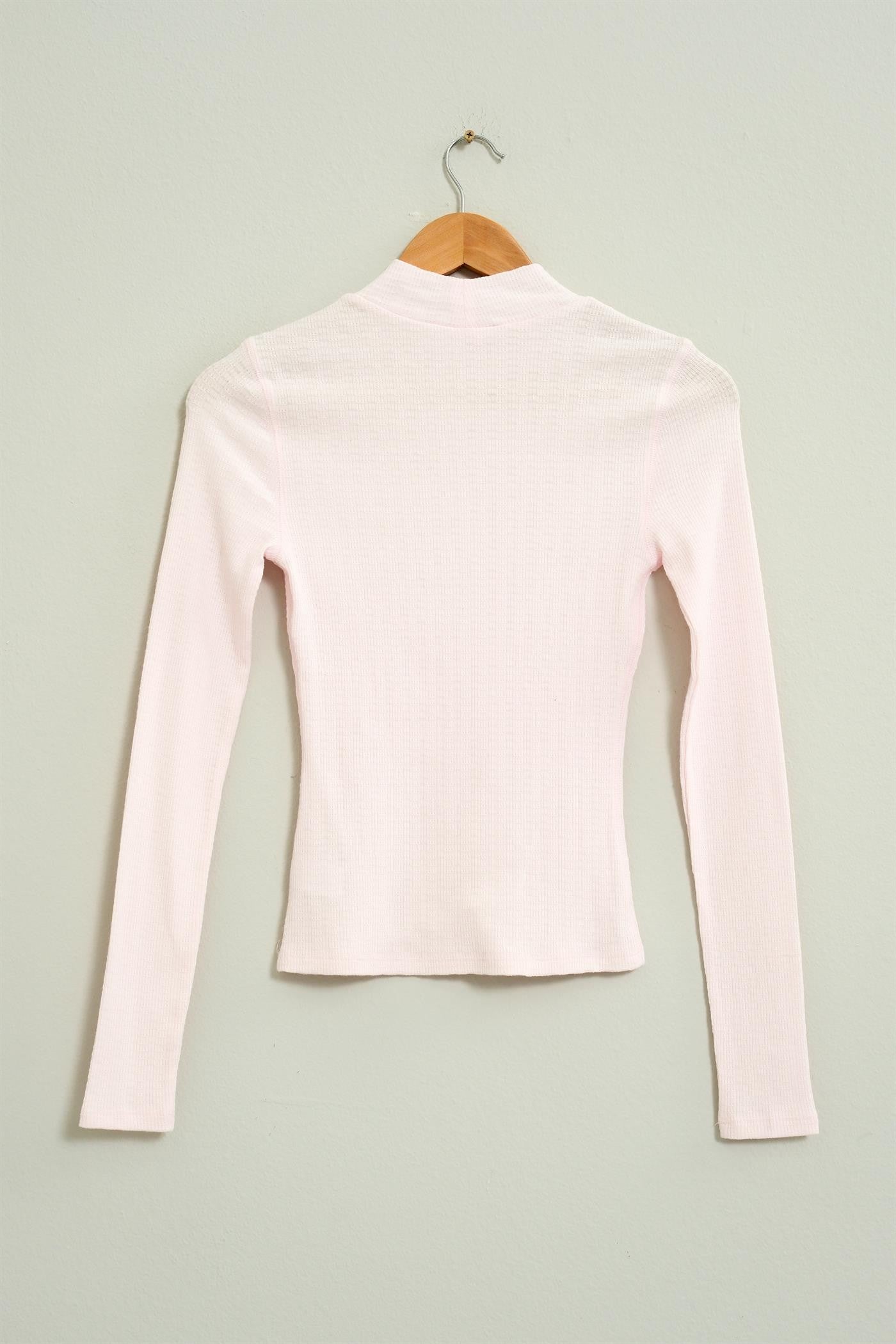 The Ada Top elevates everyday essentials with refined sophistication. This long-sleeve fitted silhouette features a distinctive high neckline that adds understated elegance to your wardrobe. Constructed from a soft, textured fabric, it delivers both visual interest and tactile comfort. Perfect for layering or wearing solo, this versatile piece transitions seamlessly from casual to polished occasions.