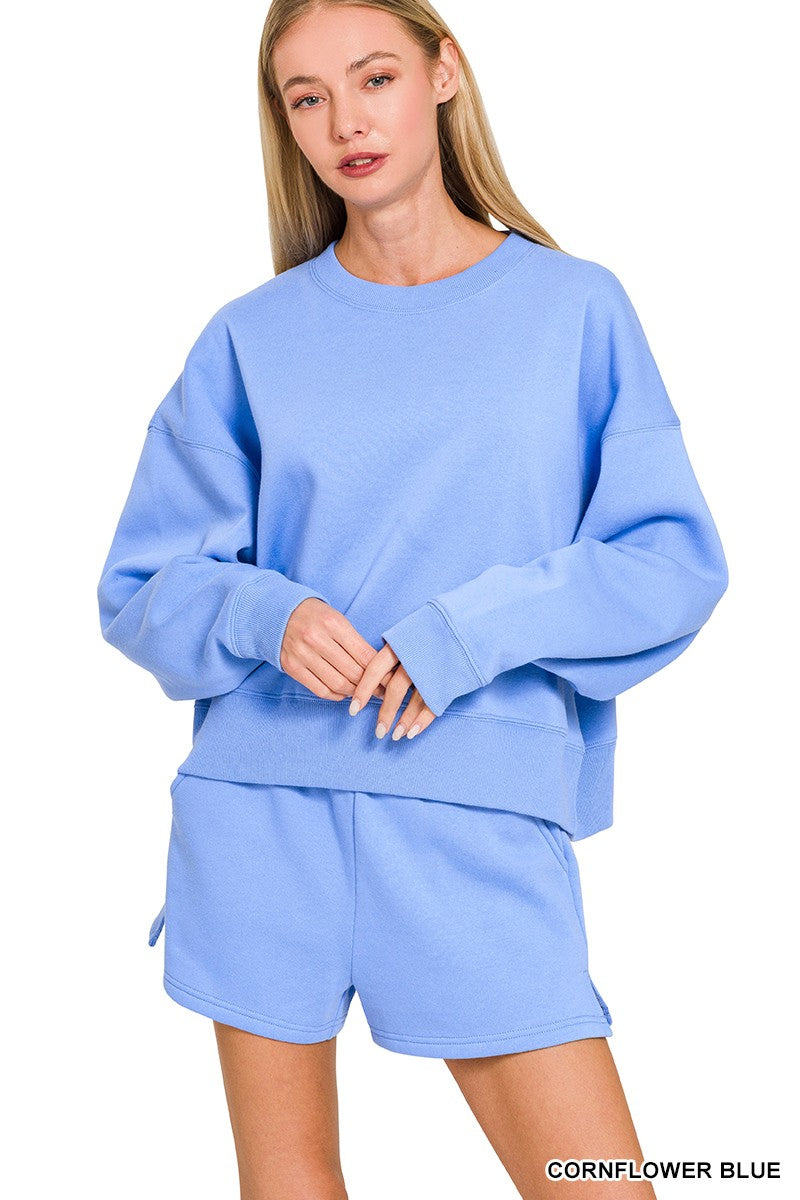 The Amelia Short Set combines comfort and versatility in a coordinated fleece ensemble. This round neck pullover pairs seamlessly with matching shorts, creating an effortless layering foundation for any season. Crafted from soft fleece fabric, the set offers warmth without bulk, making it ideal for casual lounging, travel, or weekend wear. The classic silhouette ensures timeless appeal while the coordinated pieces simplify styling. Perfect for those seeking quality basics that transition easily from day to night.