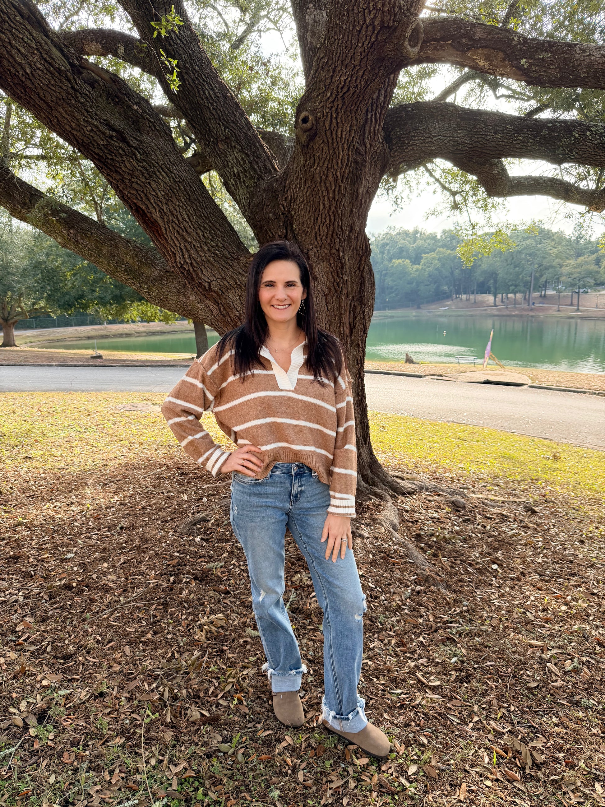 The Avery Top combines timeless style with versatile layering potential. This striped pullover features a refined collared neckline that elevates casual wear, while structured cuffed sleeves add polished definition.
