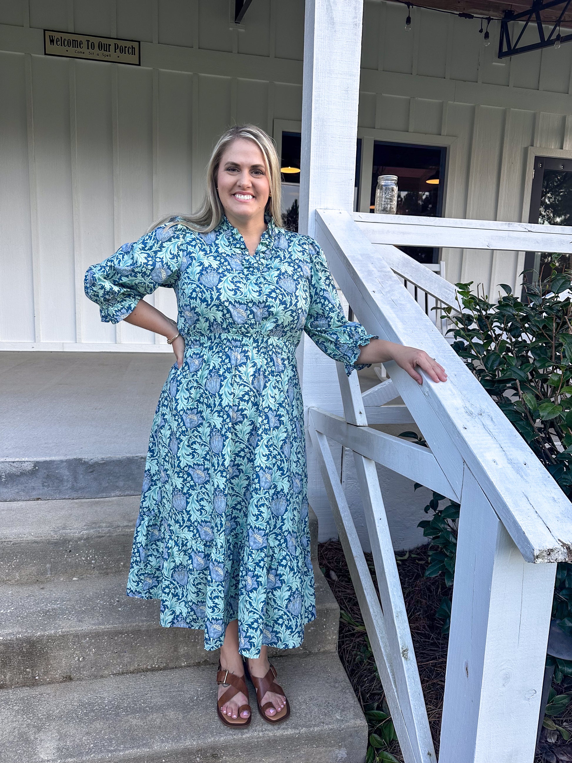The Aviana Dress features a sophisticated abstract print and a delicate ruffled neck, offering a refined yet playful silhouette. Its midi length provides versatile elegance, perfect for both daytime events and evening occasions. Crafted to balance comfort and style.