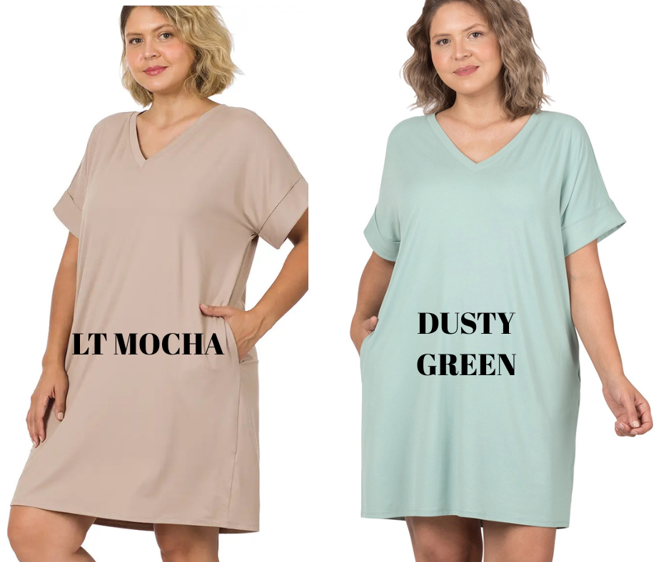 Experience the ultimate comfort and style with our Aya Curvy Dress. Made with a soft brushed DTY fabric, this dress is perfect for curvy sizes. Featuring rolled short sleeves, a flattering v-neckline, and convenient pockets, it's the perfect combination of fashion and functionality. Upgrade your wardrobe today!