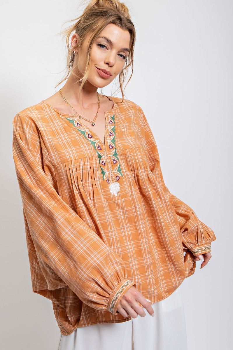 The Charlie Top features a notched neckline and relaxed boxy silhouette that prioritizes comfort without compromising style. Dolman sleeves provide an effortless drape, while delicate pintucks add refined texture throughout the garment. Embroidered detailing elevates the design with subtle sophistication. This versatile piece works equally well layered or worn solo, making it an essential addition to any wardrobe seeking understated elegance and ease of movement.