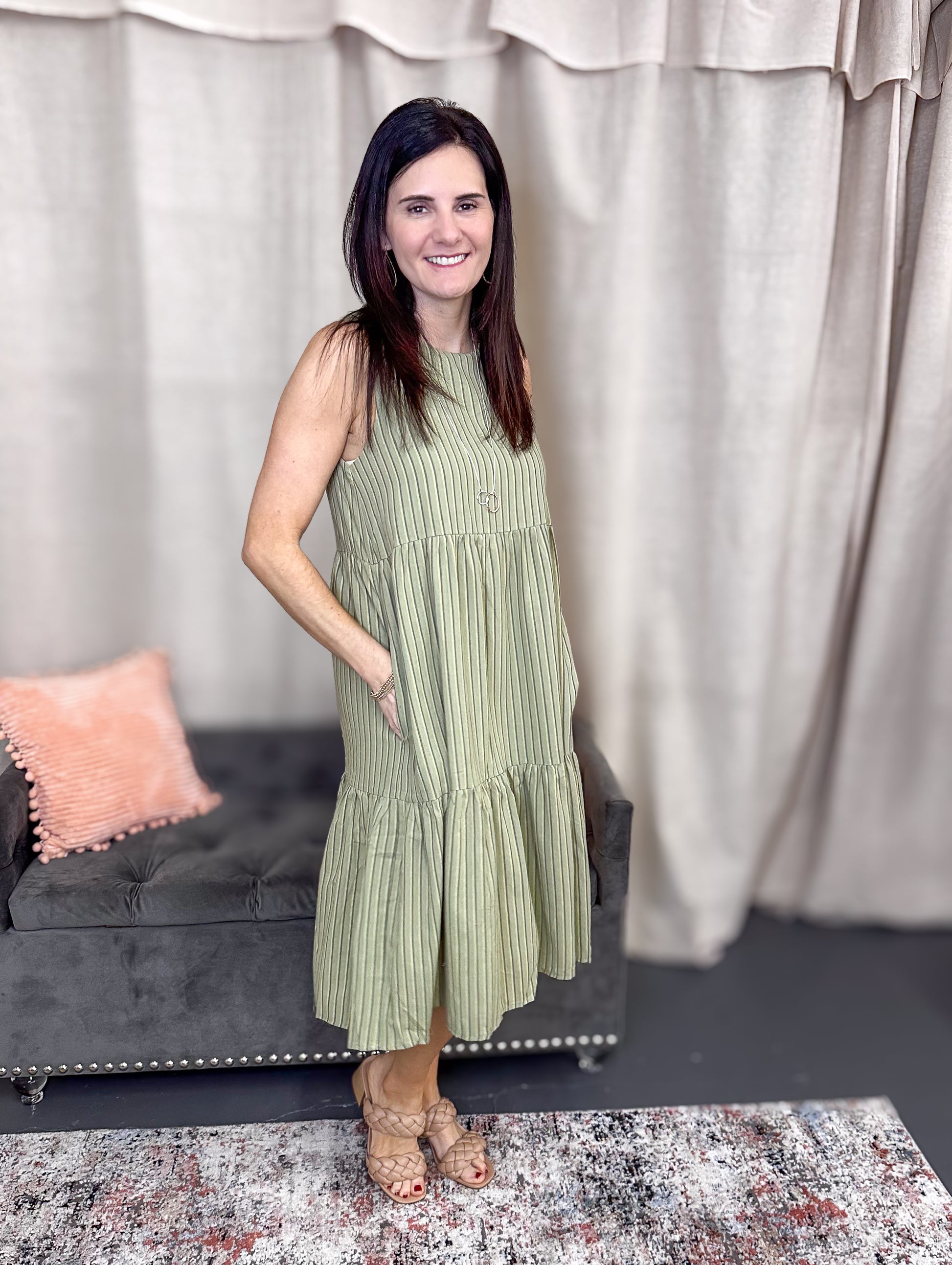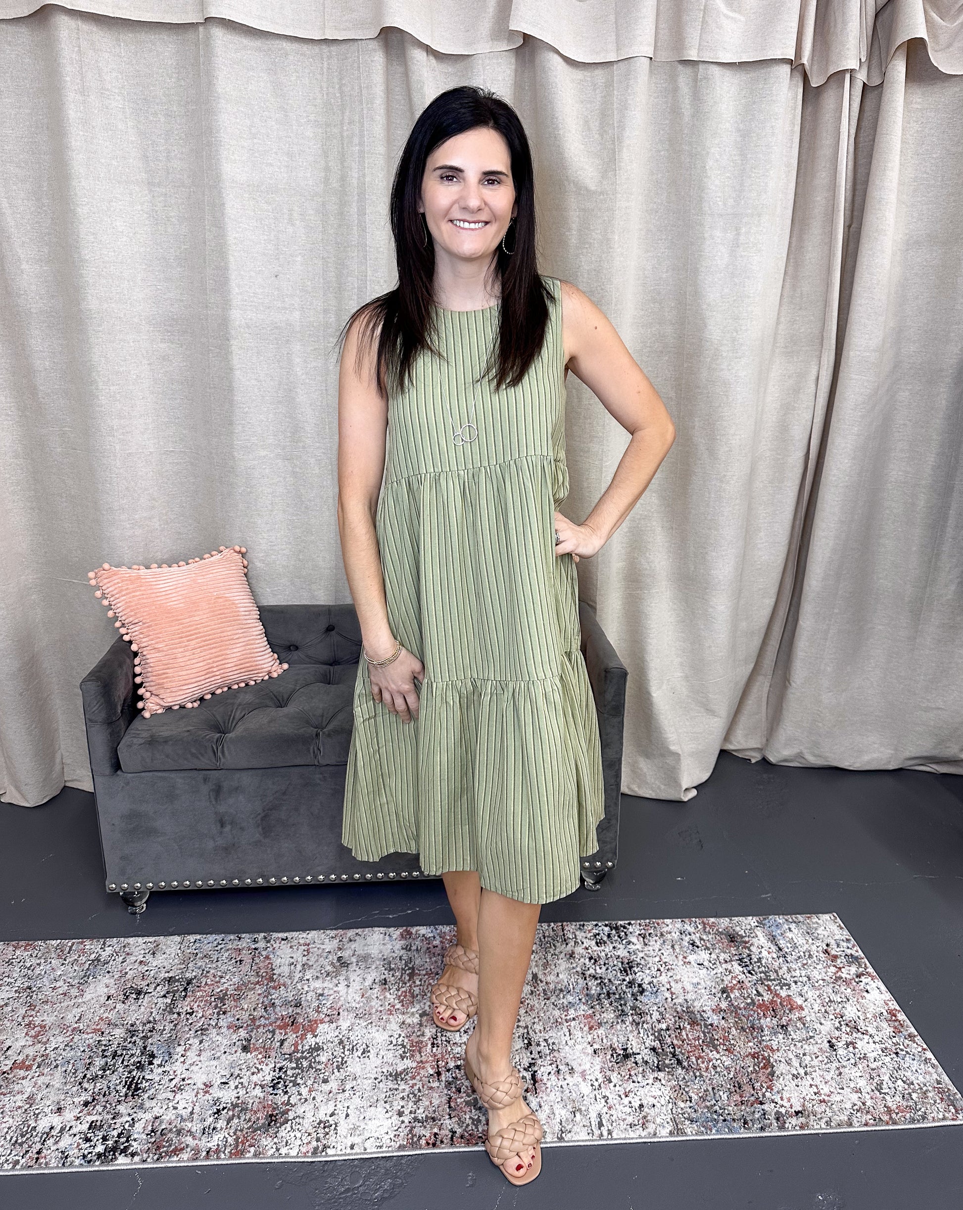 We are loving this dress for the warm-weather days coming our way! Designed with a flattering mid-length silhouette, it features tiered layers that add movement & a touch of elegance.