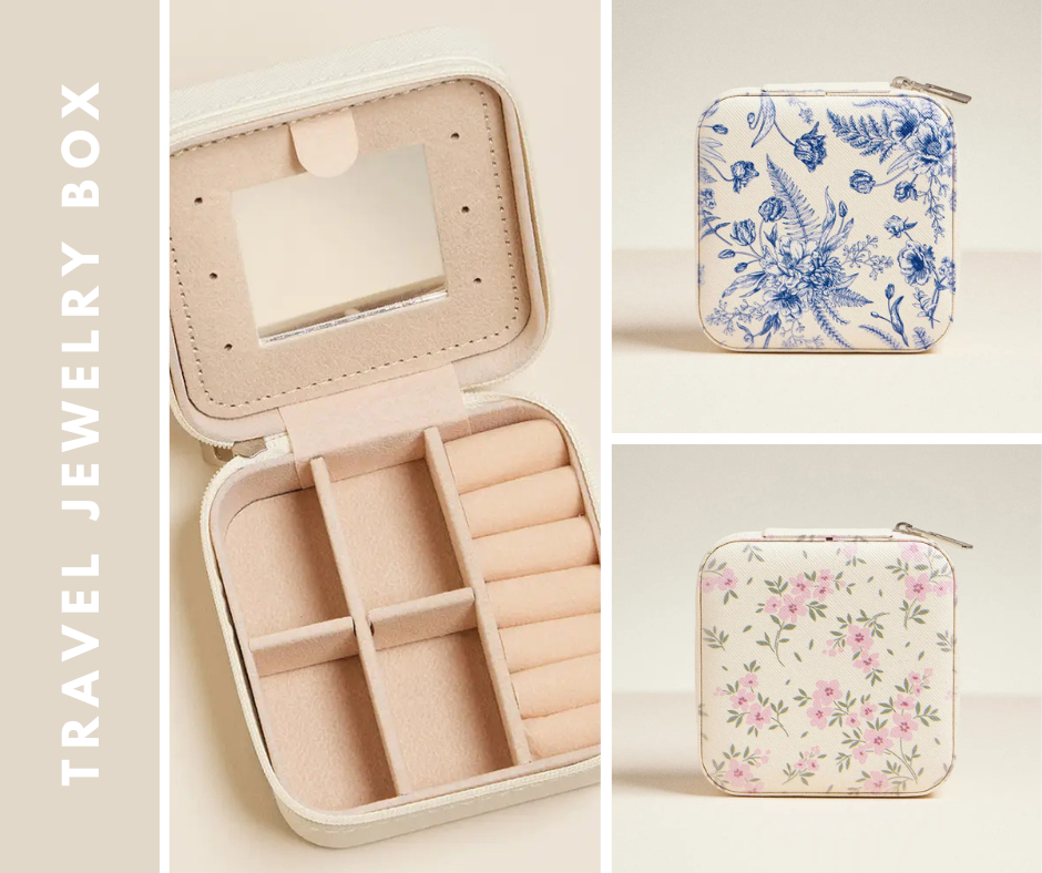 This portable square jewelry box features an elegant flower pattern, combining style with practicality. Its compact design makes it easy to carry, while providing organized storage for your favorite pieces. Ideal for travel or everyday use, it protects your jewelry from scratches and tangles, ensuring your accessories stay pristine and accessible.