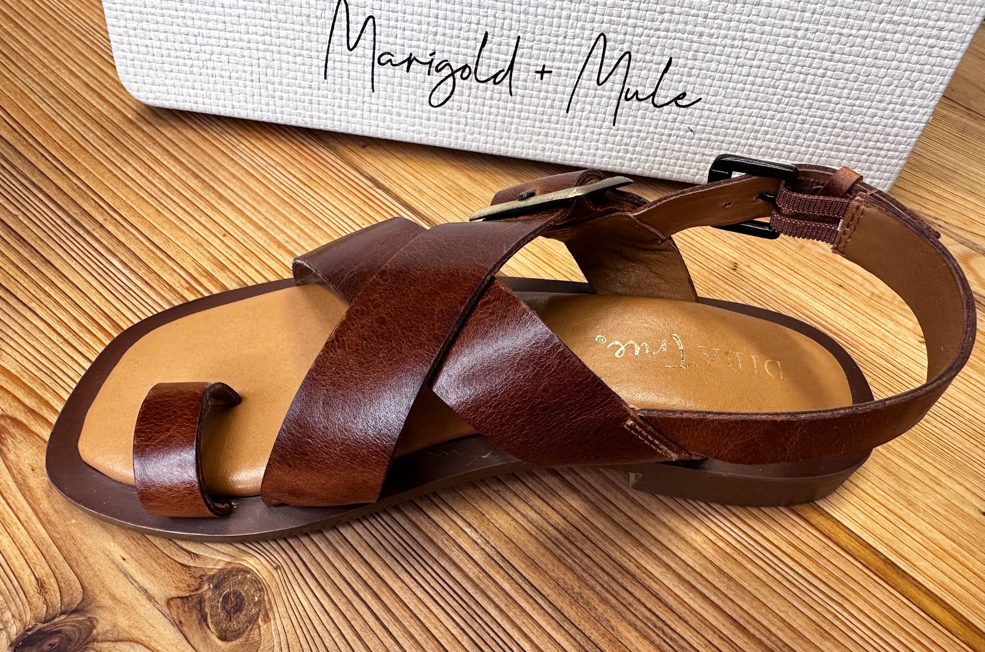 This strappy leather sandal has an adjustable strap, complete with an edgy square toe. It's leather footbed offers optimal comfort.