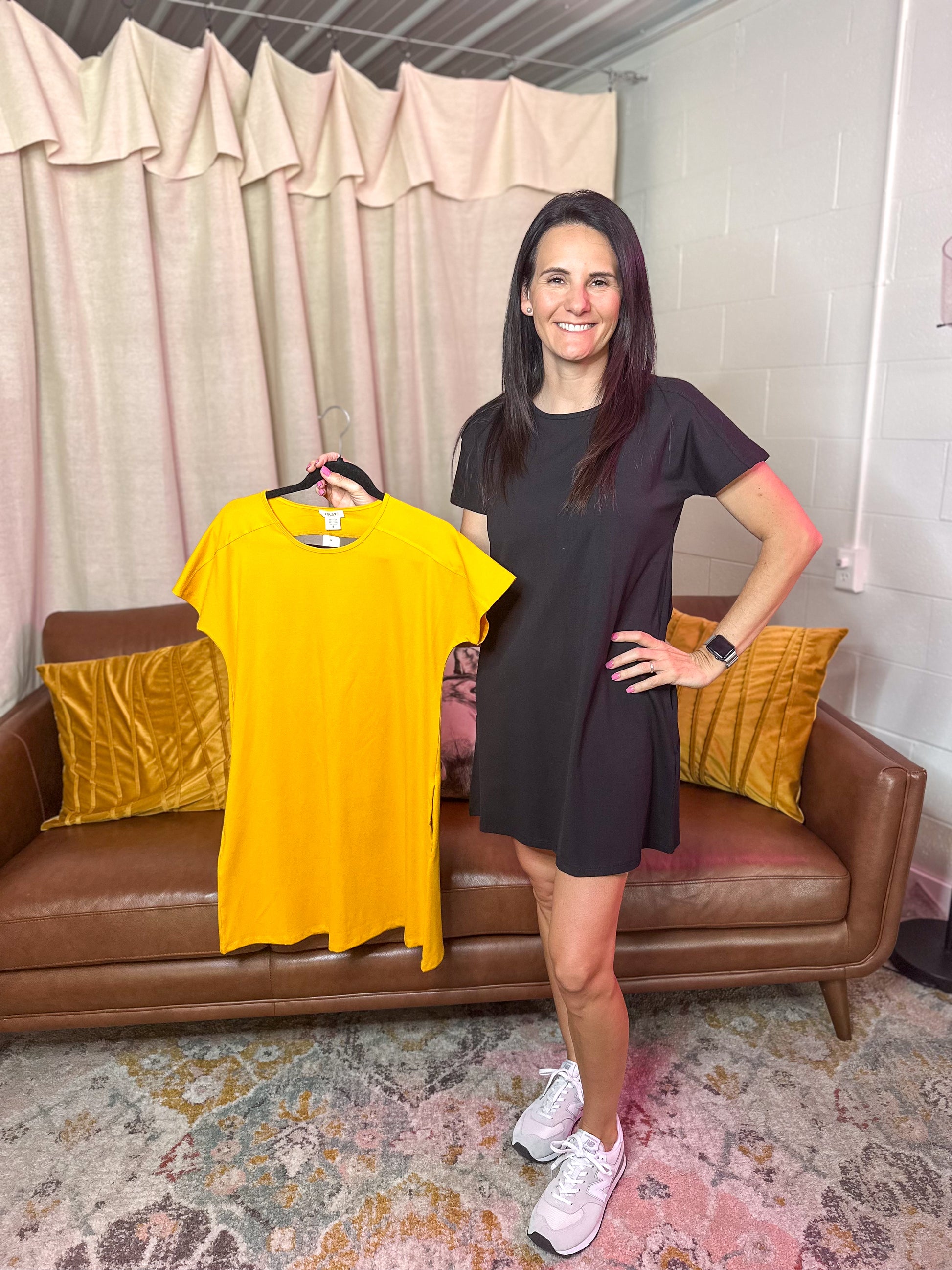 The Luna dress has short sleeve crew neck design, exposed seam detail, and A-line silhouette provide both style and comfort. Plus, with convenient side pockets and a cutout back, it's a must-have for the season.
