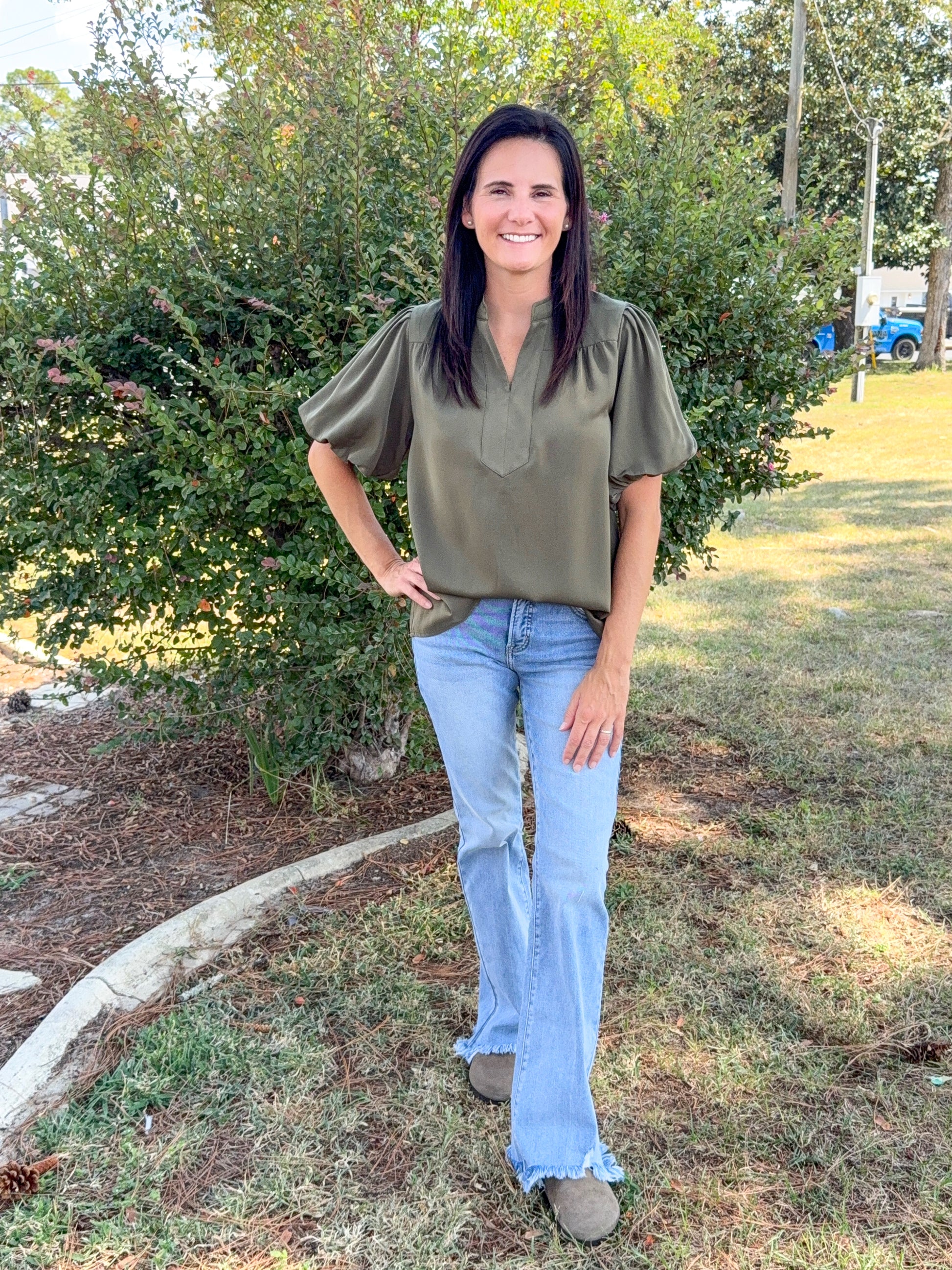 The Millie Top features elegant short puff sleeves and a sophisticated mock neck, combining modern style with timeless appeal. Its shirring detail enhances fit and texture, while the subtle V-neckline adds a flattering touch. Ideal for effortless layering or standout wear on its own.