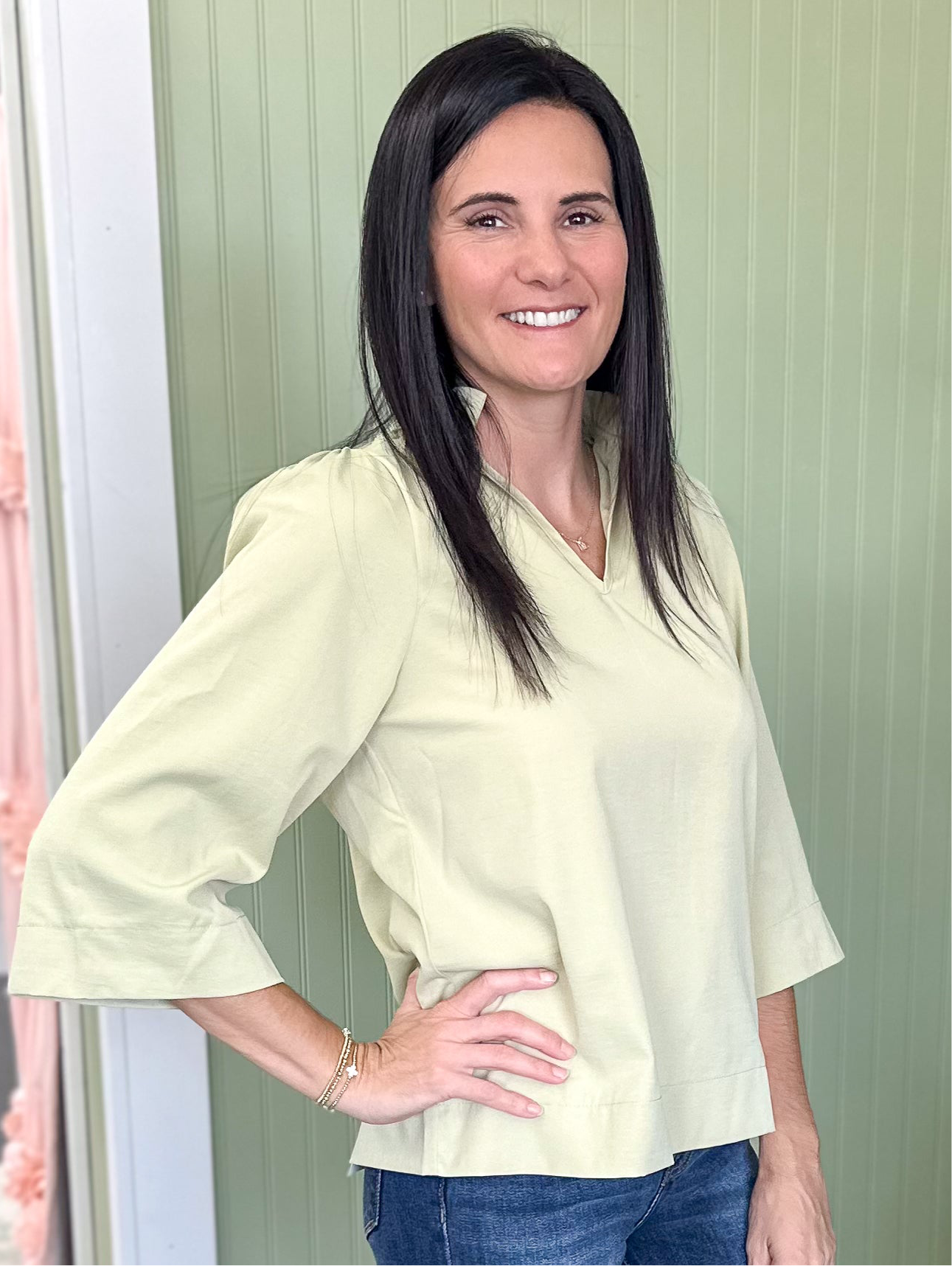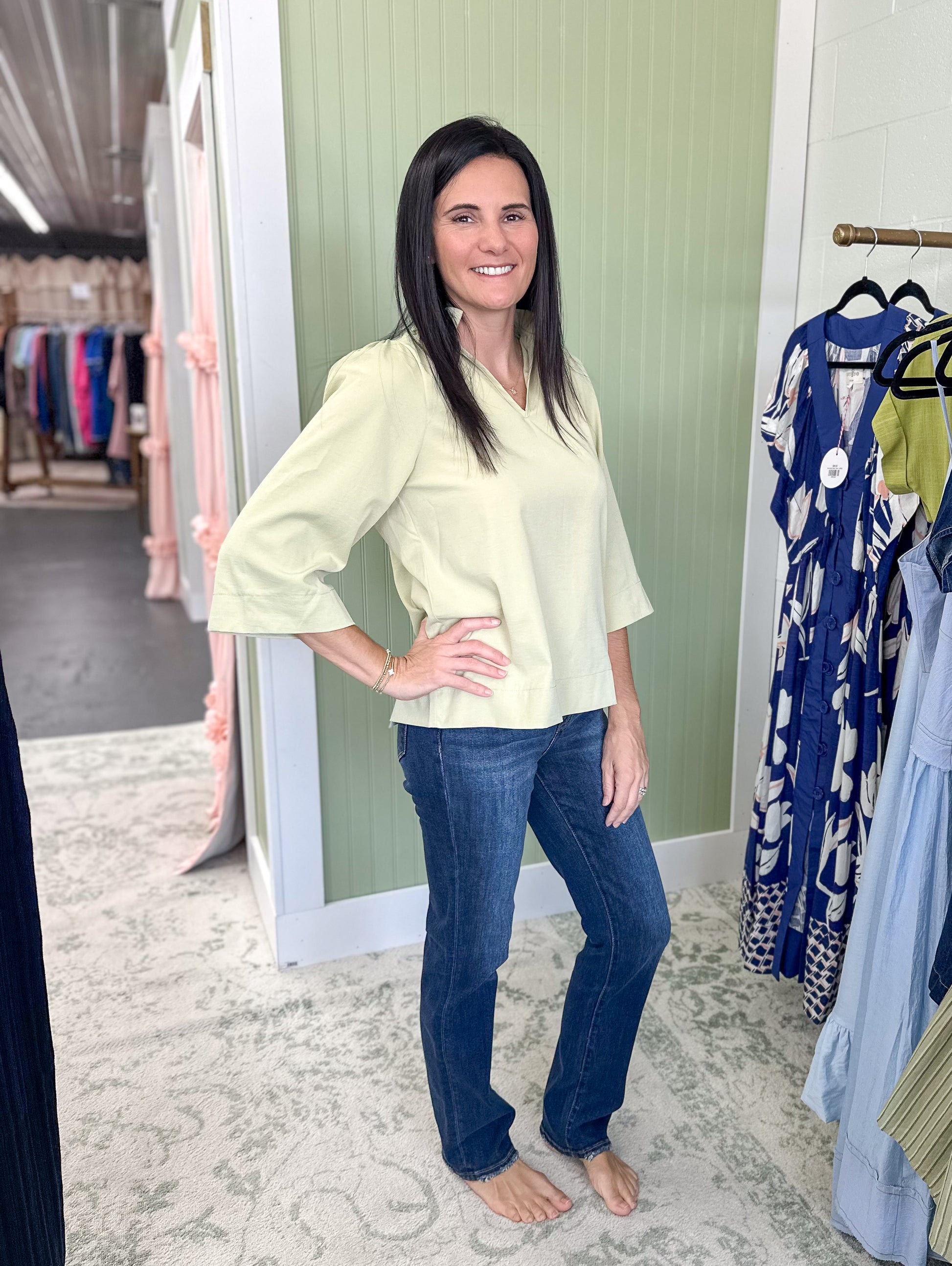 The Sofia Top features a refined ruffled neckline and elegant 3/4 length sleeves, combining classic design with modern sophistication. Crafted for versatility, this blouse offers a polished look suitable for both professional settings and stylish casual wear. Its tailored fit enhances comfort while maintaining a flattering silhouette.