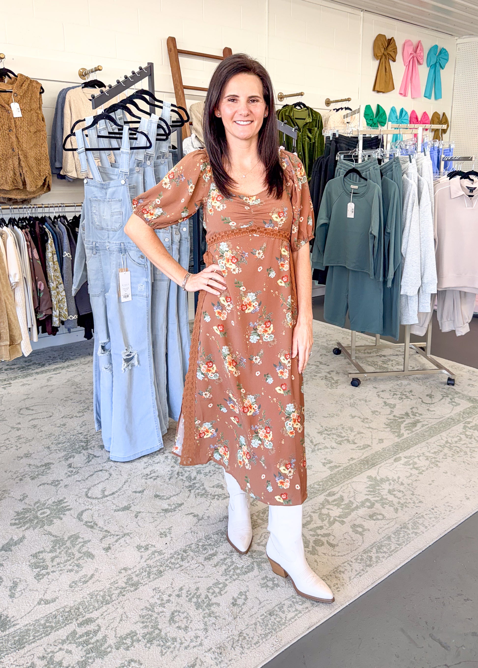 Elevate your wardrobe with this charming midi dress, designed to capture timeless elegance. The vintage-inspired floral print brings botanical sophistication to any occasion, while the sweetheart neckline flatters the décolletage with graceful curves. Delicate ruching adds dimension and movement, creating a refined silhouette. Puff sleeves deliver a romantic touch that balances the fitted bodice, making this piece equally suited for garden parties, brunch dates, or special events. A versatile staple that bridges classic style with contemporary appeal.