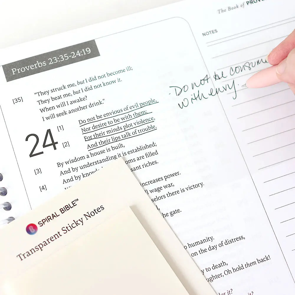 Transparent Sticky Notes designed specifically for Bible study. These crystal-clear adhesive notes let you mark passages and jot down insights without obscuring the text beneath. Perfect for spiral Bible margins or page corners, they keep your annotations visible while maintaining readability of scripture. Ideal for students, scholars, and devoted readers who want to capture thoughts and cross-references on the go.